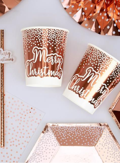 8 Pappbecher roségold (20 cm) - Pink Christmas