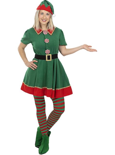 Elf Strumpfhose rot-grün gestreift für Damen