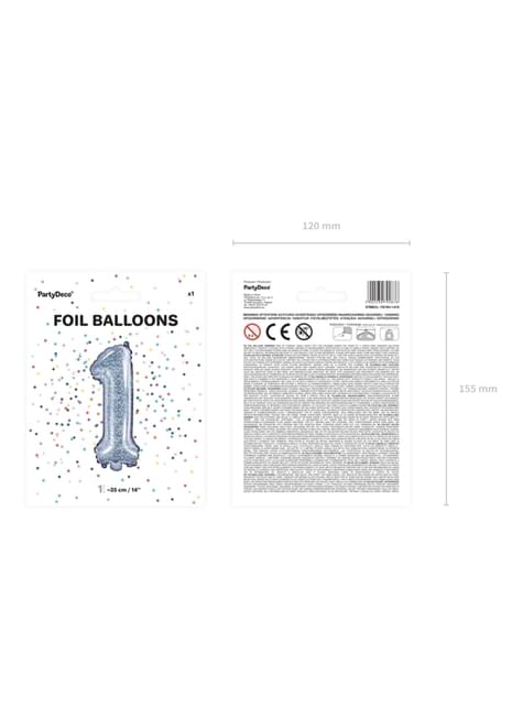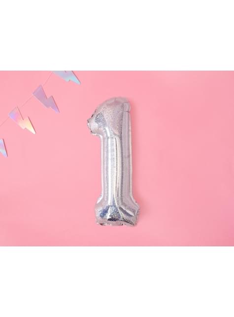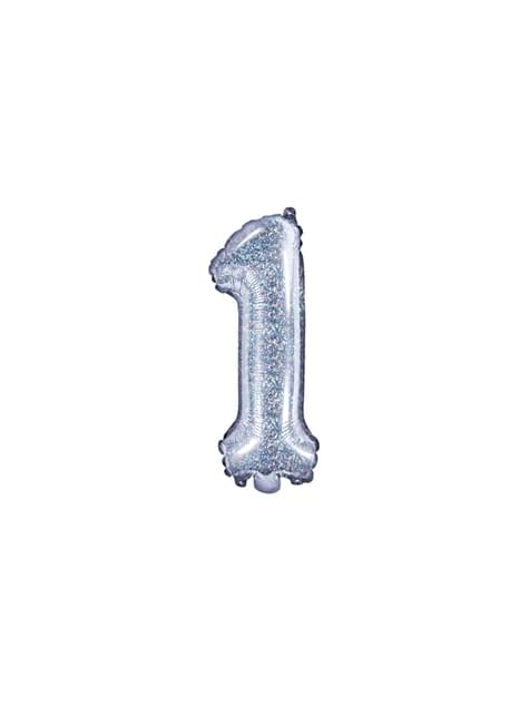 Folienballon "1" silber mit Glitzer