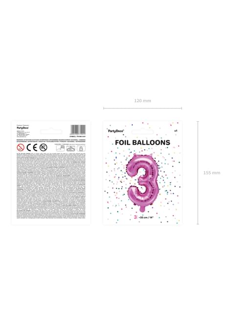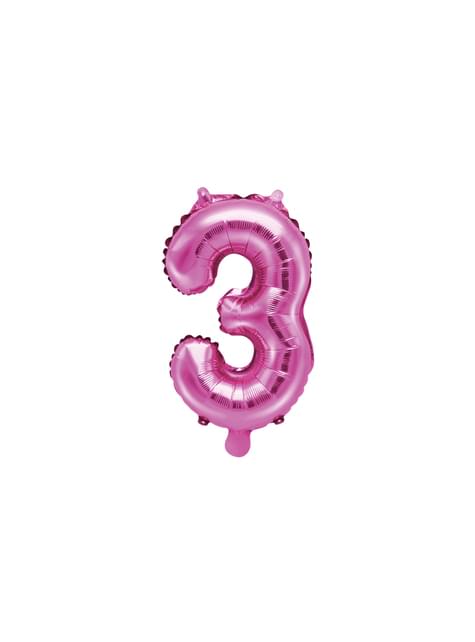 Folienballon "3" dunkelrosa