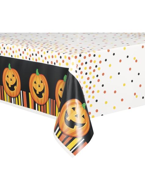 Rechteckige Tischdecke mit lachenden Kürbissen, Punkten und Streifen - Smiling Pumpkin