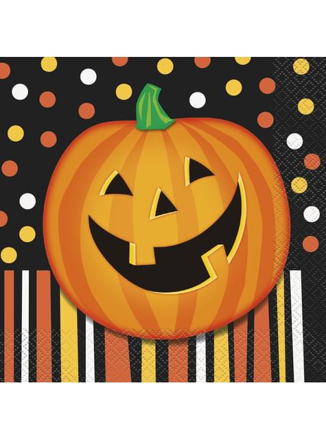 Servietten Set mit Kürbis, Punkten und Streifen 16-teilig - Smiling Pumpkin